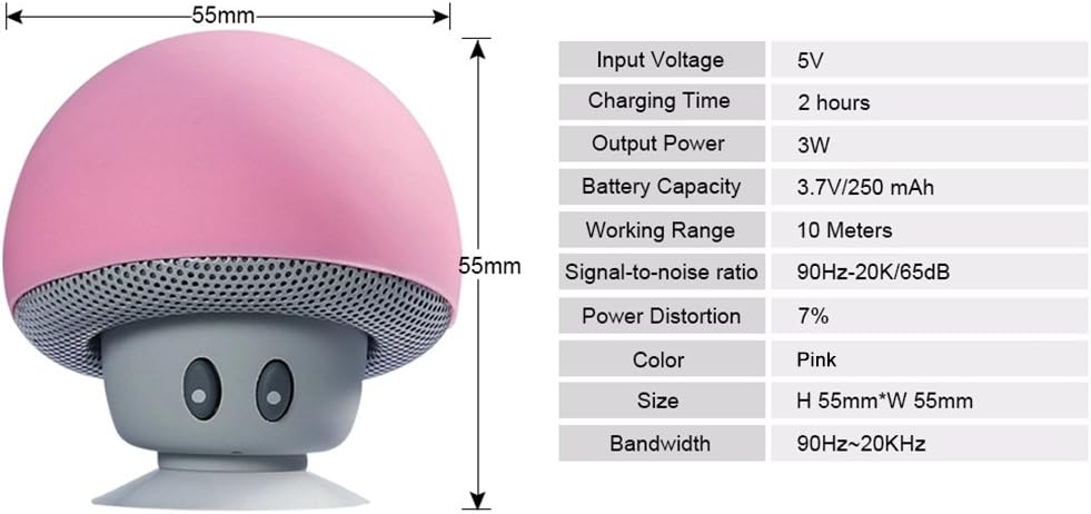 Mushroom Shape Bluetooth Wireless Speaker Highly Portable Mini Funny Super Cute Gift Accessory For iPhone, Samsung And Other Smartphones