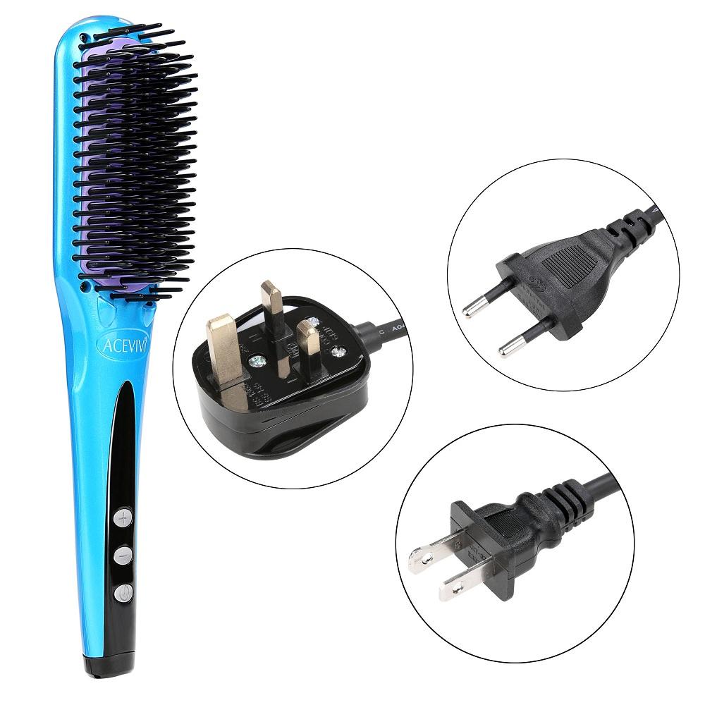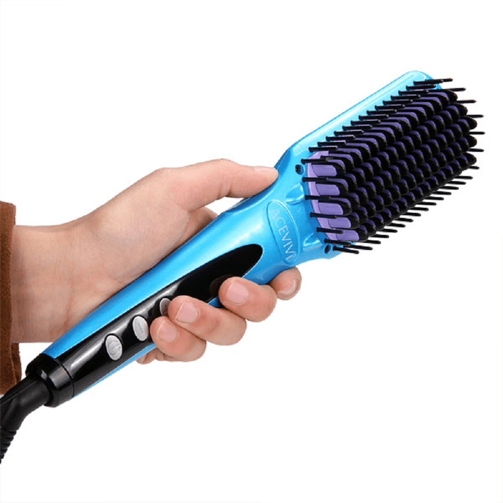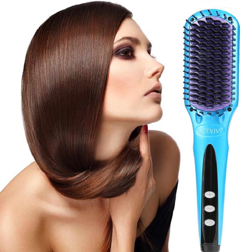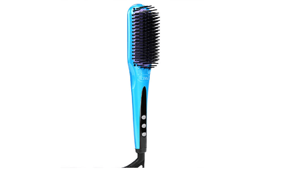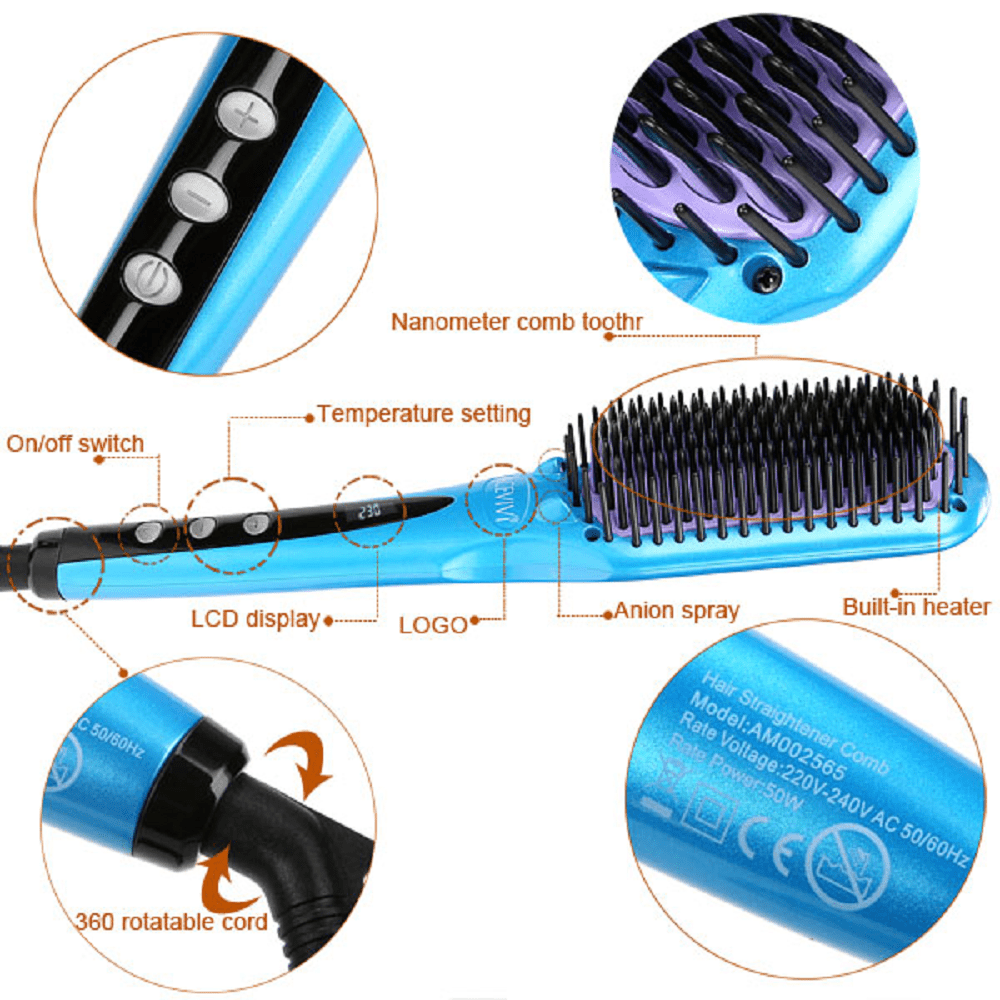 Digital Electric Hair Straightener Brush Comb Irons Blue Hair Brush